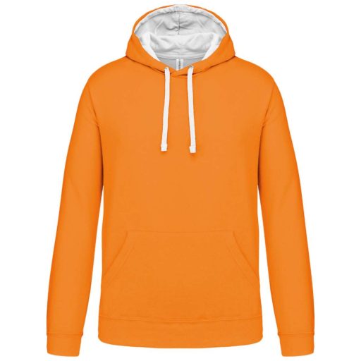 Férfi pulóver kontrasztos bélésű kapucnival, Kariban KA446, Orange/White-S