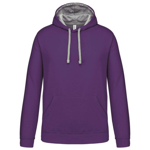 Férfi pulóver kontrasztos bélésű kapucnival, Kariban KA446, Purple/Oxford Grey-3XL