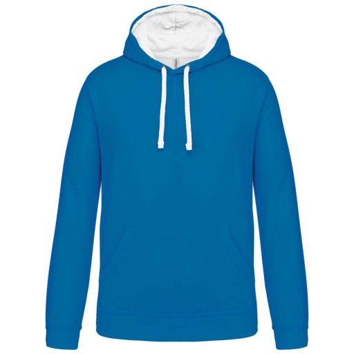 Férfi pulóver kontrasztos bélésű kapucnival, Kariban KA446, Tropical Blue/White-3XL