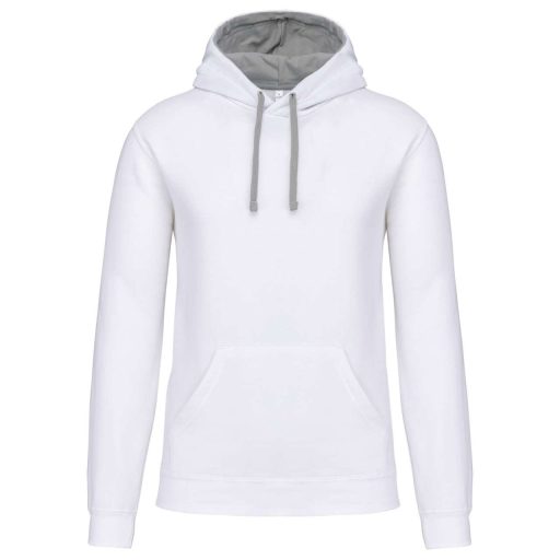 Férfi pulóver kontrasztos bélésű kapucnival, Kariban KA446, White/Fine Grey-XS