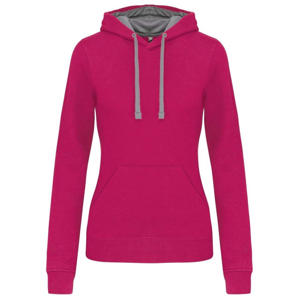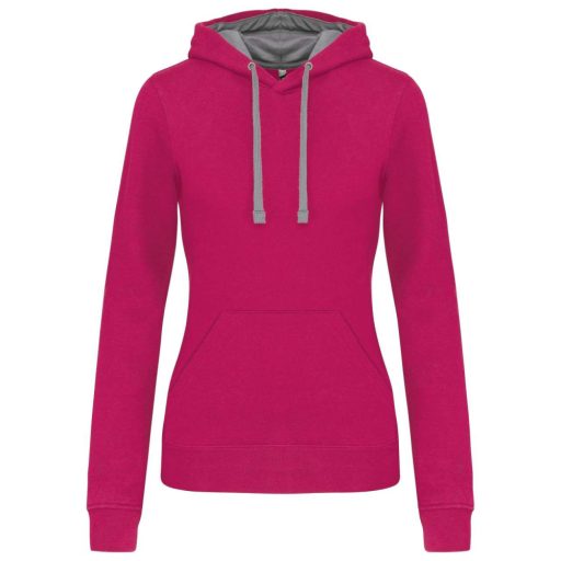 Női pulóver kontrasztos bélésű kapucnival, Kariban KA465, Fuchsia/Fine Grey-XL