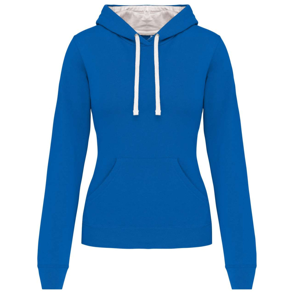 Női pulóver kontrasztos bélésű kapucnival, Kariban KA465, Light Royal Blue/White-2XL