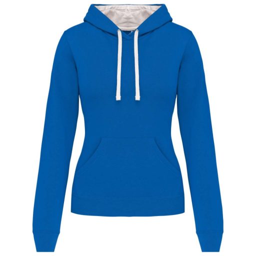 Női pulóver kontrasztos bélésű kapucnival, Kariban KA465, Light Royal Blue/White-XS