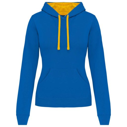 Női pulóver kontrasztos bélésű kapucnival, Kariban KA465, Light Royal Blue/Yellow-L