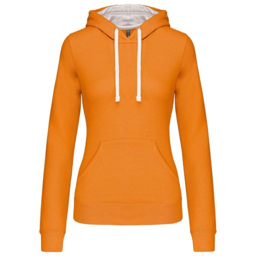 Női pulóver kontrasztos bélésű kapucnival, Kariban KA465, Orange/White-S