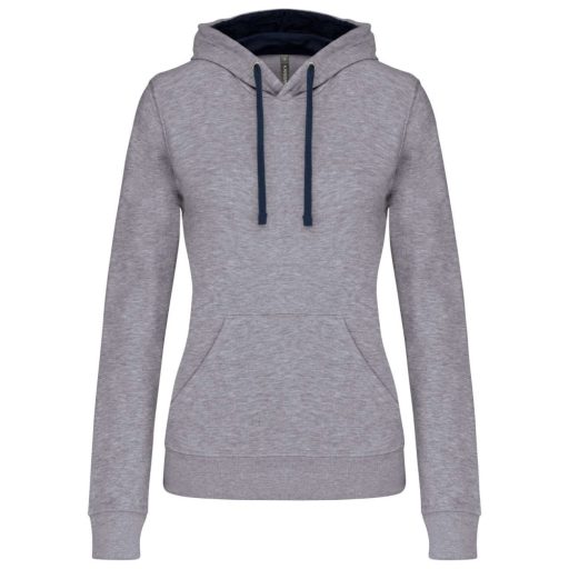 Női pulóver kontrasztos bélésű kapucnival, Kariban KA465, Oxford Grey/Navy-XS