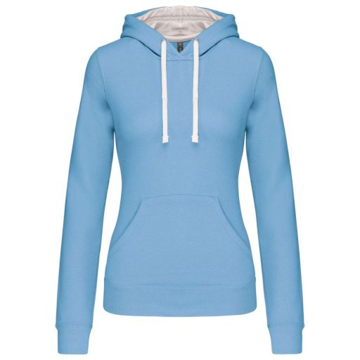 Női pulóver kontrasztos bélésű kapucnival, Kariban KA465, Sky Blue/White-XL