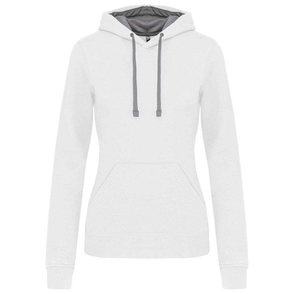 Női pulóver kontrasztos bélésű kapucnival, Kariban KA465, White/Fine Grey-S