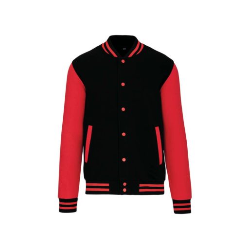 Uniszex  vastag patentos pulóver, Kariban KA497, Black/Red-XS