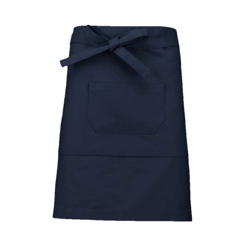 Uniszex pamut, 50 cm-es derekas kötény zsebekkel, Kariban KA898, Navy-U