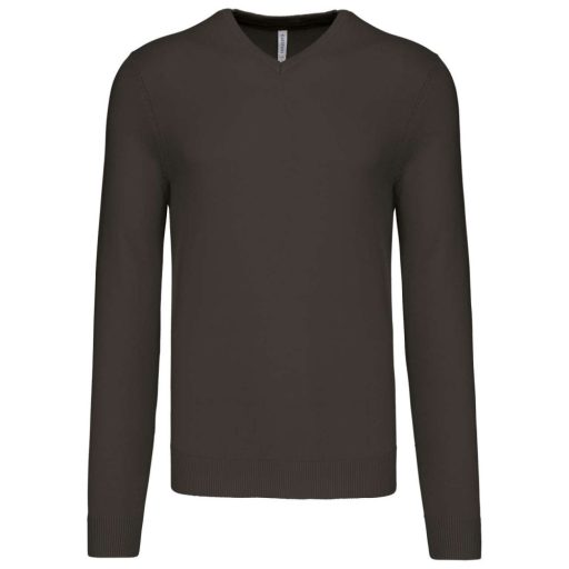 Férfi V-nyakú keskeny szabású pulóver, Kariban KA965, Dark Grey-M