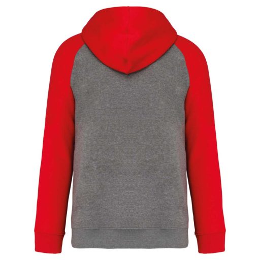 PA369 kétszínű raglán ujjú kapucnis pulóver Proact, Grey Heather/Sporty Red-S