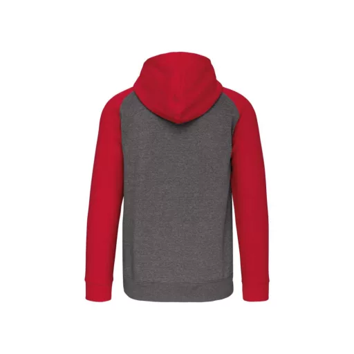 PA380 kétszínű cipzáras kapucnis kapucnis pulóver Proact, Grey Heather/Sporty Red-XS