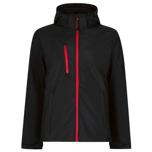 Regatta levehető kapucnis, 3 rétegű férfi softshell kabát, RETRA701, Black/Classic Red-2XL