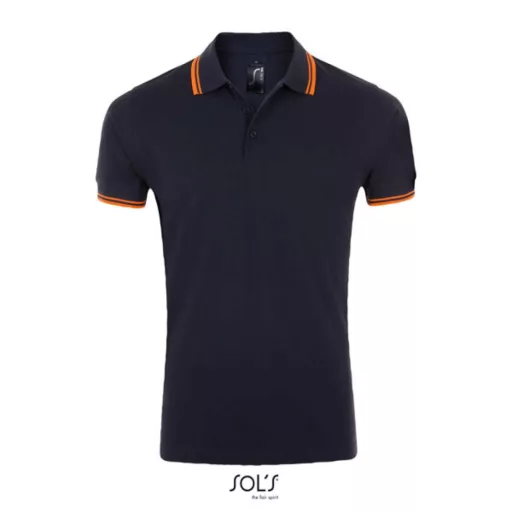 PASADENA férfi galléros póló kontrasztos csíkokkal, SOL'S SO00577, French Navy/Neon Orange-S