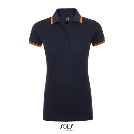 PASADENA Női galléros póló kontrasztos csíkokkal, SOL'S SO00578, French Navy/Neon Orange-M