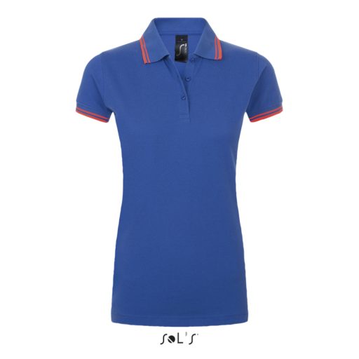 PASADENA Női galléros póló kontrasztos csíkokkal, SOL'S SO00578, Royal Blue/Neon Coral-XL