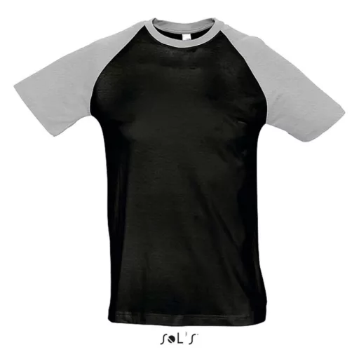 Férfi FUNKY raglános kétszínű rövid ujjú póló, SOL'S SO11190, Black/Grey Melange-S