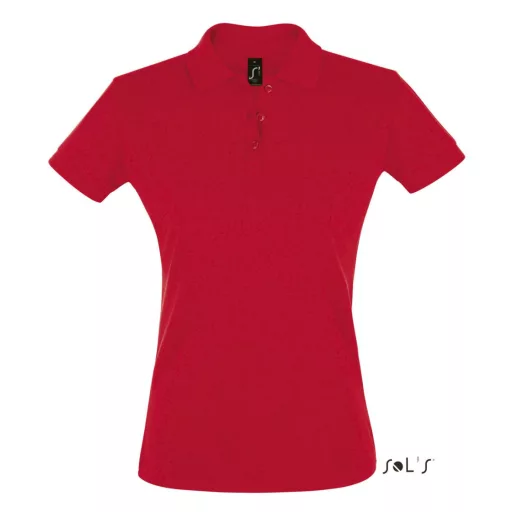 Női PERFECT három gombos rövid ujjú galléros piké pamut póló, SOL'S SO11347, Red-L