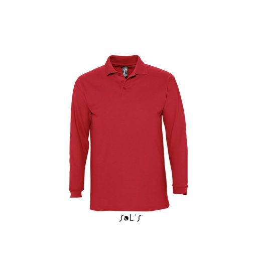 Férfi WINTER II hosszú ujjú három gombos galléros piké pamut póló, SOL'S SO11353, Red-2XL