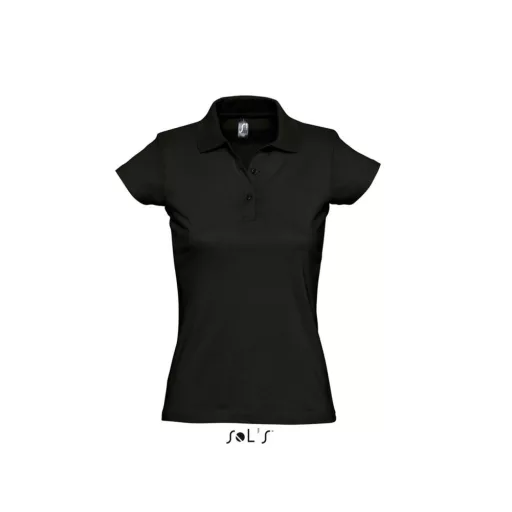 Női PRESCOTT rövid ujjú galléros pamut piké póló, SOL'S SO11376, Deep Black-S