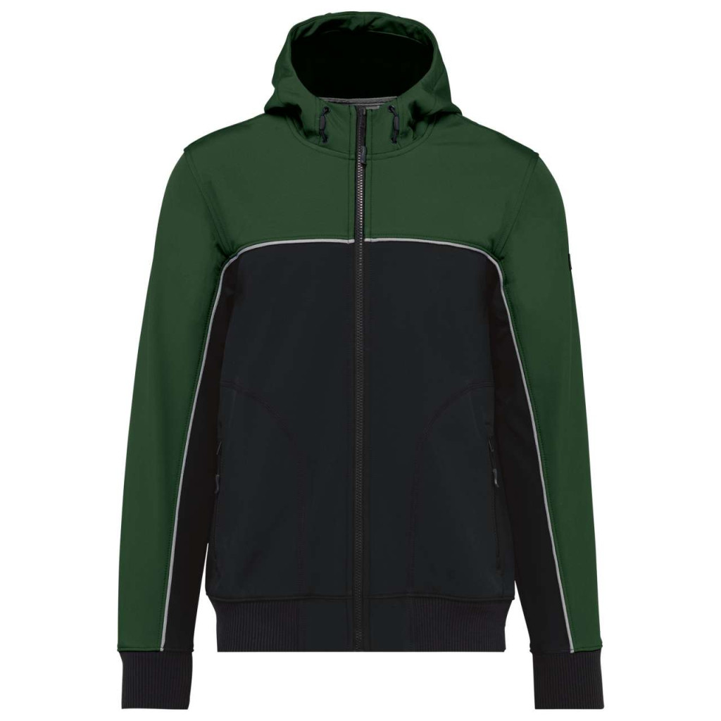 WK450 kétszínű három rétegű, kapucnis softshell dzseki Designed To Work, Black/Forest Green-3XL