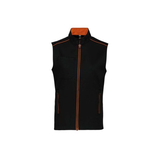 WK6148 férfi mellény három zsebbel és kontrasztos díszítésekkel Designed To Work, Black/Orange-5XL